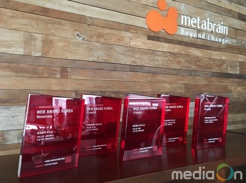 메타브레인은 웹어워드 코리아에서 지난 2015년 7개 분야, 2016년 7개 분야에 이어 2017년에도 5개 분야에서 최우수상, 우수상을 수상하는 성과를 이루었다.
