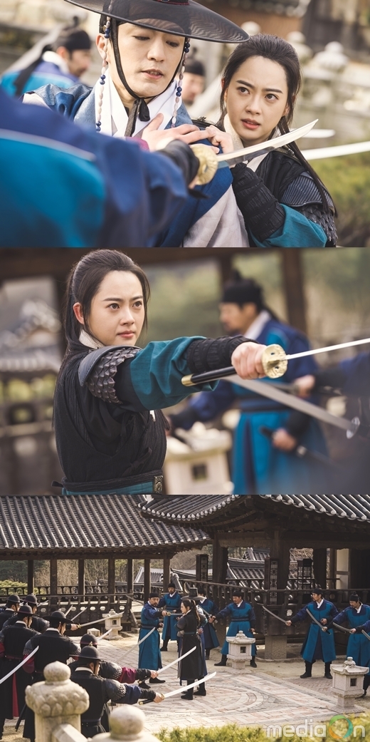 특히 고아라가 칼을 겨누고 있는 인물이 ‘문제적 왕자’ 정일우와 대척점에 선 ‘악의 축’ 정문성이어서 시선을 끈다. 이와 함께 ‘다모’ 고아라와 사헌부 군사들 그리고 정문성 수하가 첨예한 대치를 벌이고 있어 손에 땀을 쥐게 만든다. 과연 이들이 한 자리에 모이게 된 까닭은 무엇인지, 더 나아가 서로의 목에 칼을 겨누며 대립하게 된 이유가 무엇인지 궁금증을 증폭시킨다.