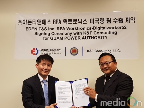 이번 계약은 이든티앤에스가 자체 개발한 RPA 솔루션 ‘웍트로닉스’를 K&F Consulting이 프로젝트 수행 계약을 맺은 괌 전력청에 납품하기 위해 체결되었으며, 최종 고객사인 괌 전력청의 CFO 존 킴은 이번 계약 체결 당시 입회해 계약 내용 등을 확인했다.