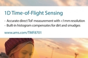 고성능 센서 솔루션 선도기업인 ams는 세계에서 가장 작은 크기의 통합형 1D ToF 거리 측정 및 근접 센싱 모듈을 출시한다고 밝혔다. 새로운 센서는 대상물 감지 기능을 구현하는 데 매우 적합하다. 예컨대 스마트폰 사용자의 얼굴이 정해진 범위 안에 들어왔을 때 얼굴 인식 시스템이 작동하도록 하는 애플리케이션을 구현할 수 있다. 2.2mm x 3.6mm x 1.0mm 크기의 패키지로 제공되는 새로운 TMF8701 센서는 소형 베젤에 적합하여 스마트폰 제조회사는 이를 활용해 높은 단말기 본체 대 화면 비율을 가진 와이드스크린 단말기 설계를 구현할 수 있다. ams 통합 광학 센서 사업부의 데이브 문 선임 제품 마케팅 매니저는 “스마트폰 제조사들은 오늘날의 1D FoT 센서의 결점이 무엇인지 명확히 알고 있다. 크기가 너무 크고, 역광 상황이나 디스플레이 화면이 더러울 때 성능이 확연히 저하되는 것”이라며 “TMF8701은 오염과 간섭에 대한 우려를 크게 줄이는 보다 작은 풋프린트의 디바이스로서, 1D FoT 센서의 결점과 관련한 모든 우려 사항들을 해소한다”고 말했다. 새로운 TMF8701은 VCSEL 적외선 이미터, 다수의 SPAD 광 감지기와