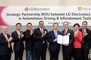 LG전자가 마이크로소프트와 인공지능 자율주행 SW를 개발하기 위해 손을 잡았다고 지난 9일 밝혔다. 양사는 지난 7일 라스베이거스 컨벤션센터에서 인공지능 자율주행 SW개발을 위한 업무협약을 체결했다. 협약식에는 LG전자 김진용 VS사업본부장, 윤용철 자율주행사업 Task리더, 임종락 VS스마트개발센터장과 MS의 크리스 카포셀라 최고 마케팅 책임자, 산제이 라비 자동차 사업 부문장, 한국MS 이지은 엔터프라이즈 글로벌 사업본부 총괄 등 관계자들이 참석했다. LG전자는 이번 업무협약을 통해 차세대 주력사업인 자율주행차 부품 및 인포테인먼트 경쟁력의 발판을 마련했다. LG전자는 앞선 기술력의 클라우드 플랫폼 ‘애저’를 활용해 인공지능 자율주행 SW 를 개발할 계획이다. 양사는 다목적 전방 카메라 및 운전자 모니터링 카메라 등 인공지능 기반 첨단 운전 보조 시스템, 가상 비서 솔루션 엑셀러레이터를 활용한 음성지원 차량 인포테인먼트 시스템, 데이터박스 서비스를 이용한 인공지능 SW의 학습 및 검증 데이터 처리 등 다양한 분야에서 협업할 예정이다. 애저가 지원하는 HPC, GPU 등 연산력을 이용하면 인공지능 자율주행 SW를 학습시키는 데에 투입되는
