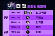 SBS 신개념 음악 예능 ‘더 팬’의 예비스타가 온라인 팬미팅을 가졌다. 지난 18일 ‘더 팬’ 4라운드에 진출한 민재휘준, 콕배스, 임지민, 유라, 비비, 용주, 트웰브, 카더가든은 온라인 팬미팅을 통해 팬들을 만났다. 최근 진행했던 첫 팬미팅에 아쉽게 오지 못한 많은 팬들을 위해 특별한 이벤트를 마련한 것. 이번 온라인 팬미팅에서 예비스타들은 팬들이 궁금해하는 것들에 대해 답하며 실시간으로 소통하는 시간을 가졌디. 온라인 팬미팅은 지난 18일 오후 7시부터 SBS 공식 유튜브 채널 ‘SBSNOW’에서 라이브 방송되었다. 예비스타별로 열리는 이번 팬미팅은 민재휘준, 콕배스, 임지민, 유라, 비비, 용주, 트웰브, 카더가든 순으로 진행되었다. 한편, 생방송 진출에 절대적인 요소가 될 멜론 앱 투표는 19일 밤 자정까지 진행되었다.